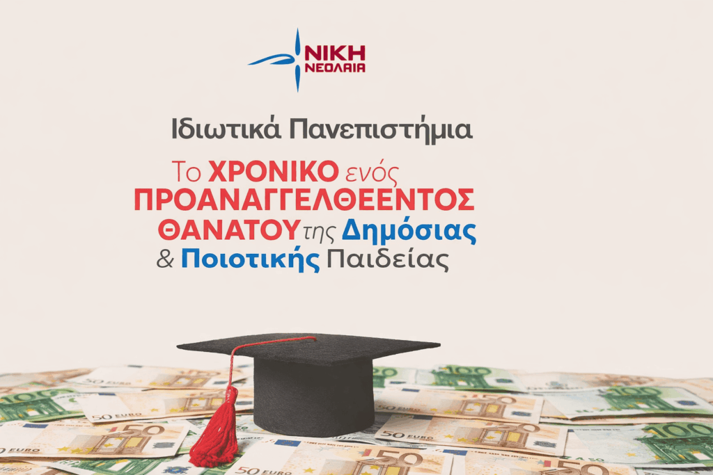 Ύπουλη, σκανδαλώδης και θεσμικά επικίνδυνη εκτροπή, που απειλεί την ισότητα στην εκπαίδευση και την ακαδημαϊκή ελευθερία. Όχημα για την παράκαμψη και ακύρωση του Συντάγματος.